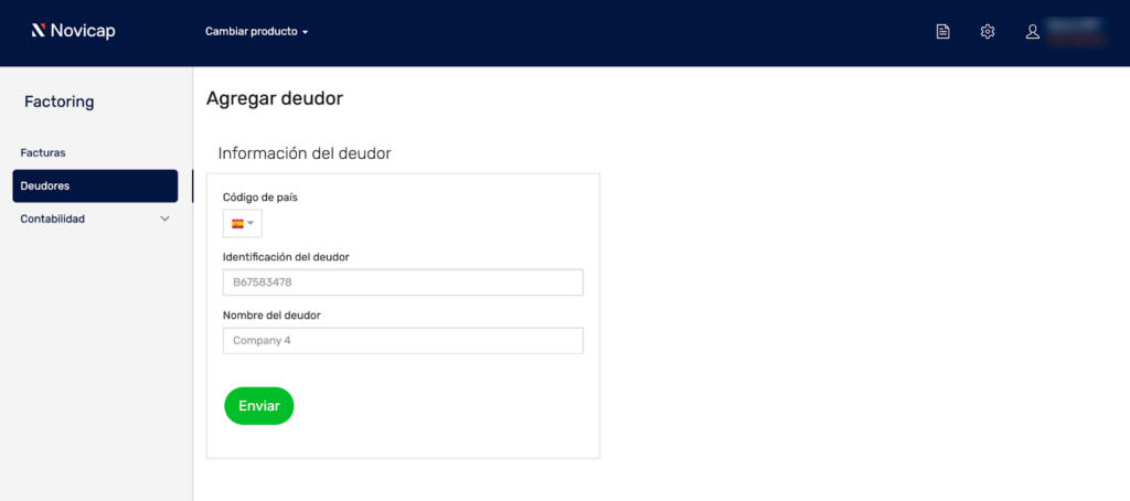 Para poder solicitar un préstamo respaldado por facturas, primero debes dar de alta a los deudores (tus clientes) que emiten dichas facturas.