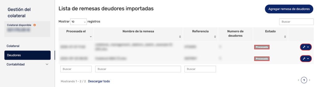 Subir una remesa de deudores a la plataforma