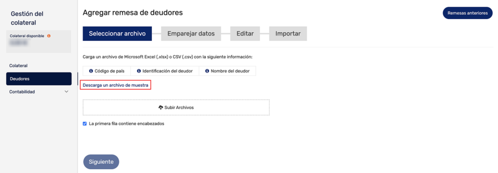 Descargar el archivo de muestra para subir la remesa